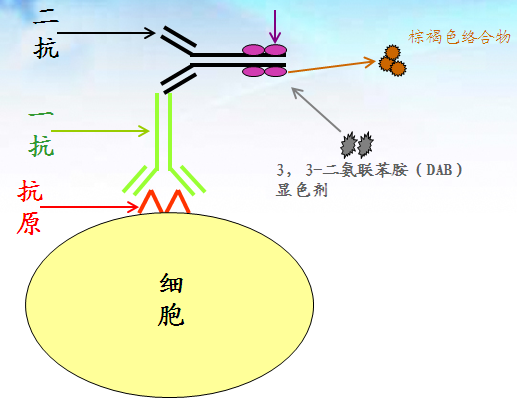 ?? 原理:利用抗原與抗體的特異性結合原理和特殊的標記技術,通過化學反應使標記抗體顯色,對組織細胞內的特異性抗原進行定位、定性、定量檢測的一門技術。