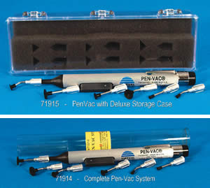 這是一款新型的用來拿取小的、片狀的物體的工具,常見與電子集成業(yè)、珠寶業(yè)、制模等等。在電鏡室,Pen Vac™也是很得力的一個(gè)工具:可以用來拾取銅網(wǎng)微柵、取樣品托、排膜、載玻片、蓋玻片等等,支撐時(shí)間可達(dá)一分鐘。