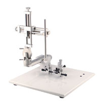 Stoelting創造性在的一個基座上放置兩個定位單元,每個單元都帶有獨立的耳棒。通過引導螺紋,操作臂可以控制左右和上下方向的移動;前后控制通過楔形榫頭來進行,在每個方向上都可以移動80mm 。耳棒的高度可以獨立調節,垂直方向的刻度采用了激光雕刻技術,能夠非常新晰的讀出耳棒的高度。輕質的聚甲醛樹脂耳棒,前端逐漸變細;特殊設計的下頜夾持器;非植入性橡膠頭。