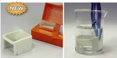 包括Wash-N-Dry蓋玻片架和Wash-N-Dry載玻片架,均可以高壓滅菌,可以透明、處理、染色、干燥一口氣完成。國際實驗室最新流行款式,一般用燒杯來盛放染液或者洗液,再將架子浸入其中。蓋玻片架至多可以放置10片蓋片,最奇妙的是蓋片的大小不受制約,18mm22mm25mm,均可以從容放置。載玻片架可以放置12個標準載玻片。