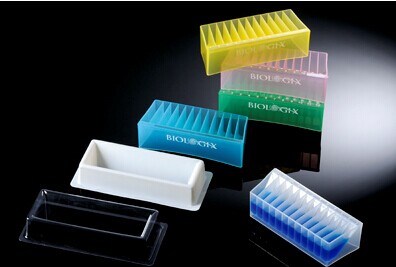 提供兩種規格的試劑槽:單道和12道。白色單道試劑槽:聚苯乙烯材質。試劑槽的凹槽容量最大55毫升,可以與單一移液器或者多渠移液器配套使用。伽馬射線消毒,獨立袋裝,50/箱。